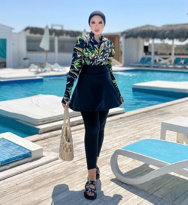 - بوركيني 5 قطعة تصميم محتشم وعصري لمظهر أنيق على الشاطئ.