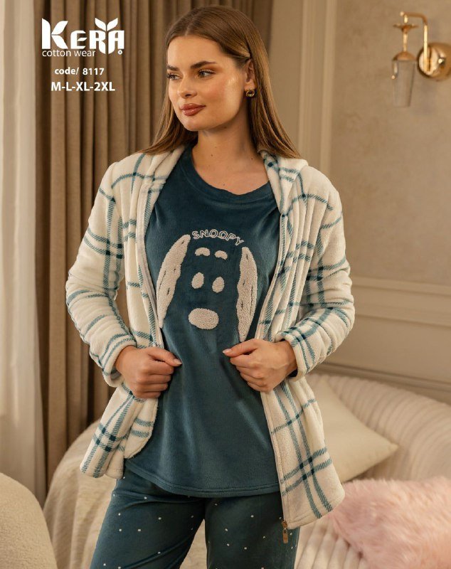 - الخامة : بيجامه 3ق قطيفه هايدي وشين & جاكت بولار